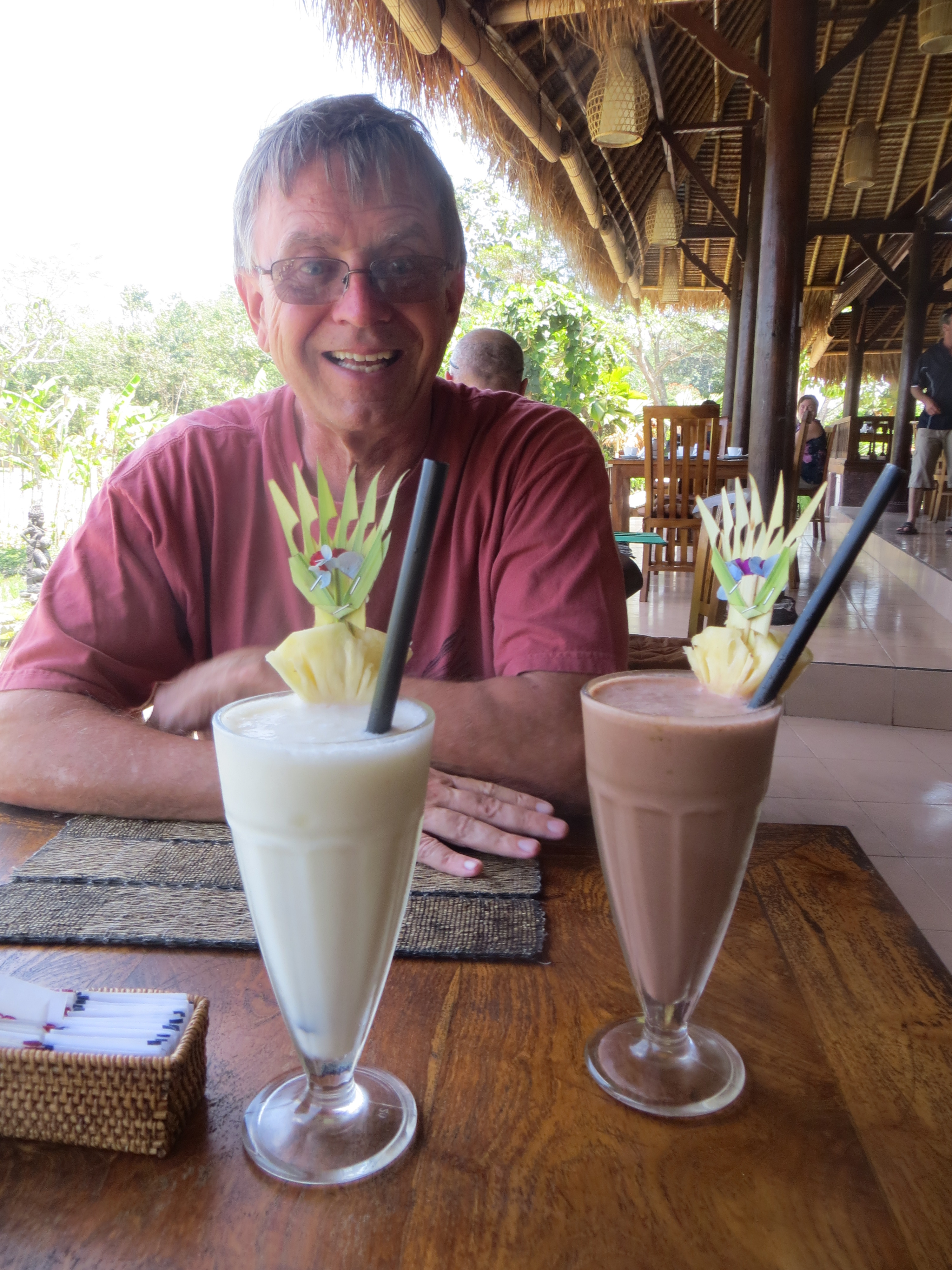 John is crazy happy about all the smoothies from fresh tropical fruit.